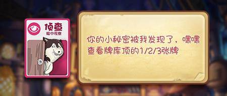 在你的回合打出“侦查”,可立即查看位于牌堆顶的N张牌(N为牌面上所显示数字,默认为1)。