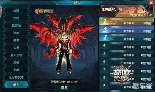 《奇迹:最强者》排行榜中的“魅力榜”绝对是游戏中玩家彰显个性的最好舞台。在这个榜单上的每一位玩家都身着各色华服,而那些最具个性,经常在服务器中为我们上演变装秀的玩家们更是会名列前茅。想要知道你的魅力究竟如何吗?那就打开魅力榜单一探究竟吧!