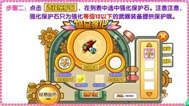 越高级的武器,强化之后获得的属性加成越大!但是也越难提升强化等级,当强化等级+7以后,装备就有可能强化掉0咯,这时记得使用强化保护石(配图)哦!它可以保护装备的强化等级不倒退!