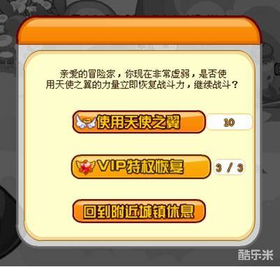 2.如果你不小心被小怪或BOSS打挂了,记得不要使用天使之翼,因为天使之翼很珍贵,还是回城体息吧。