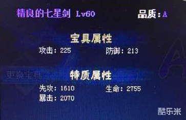 1.宝具定位描述,七星剑的定位是攻击爆伤流宝具然而做出来之后其基础属性是攻击、防御。宝具的定位属性中的第二个属性是需要升级宝具后在特质中获取的。