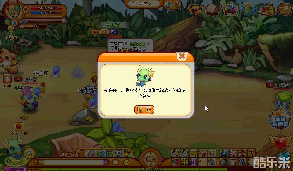 购买到捕捉球以后,我们就可以去诺兰森林入口捕捉宠物。
