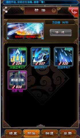 万剑曲是最初任务赠送的三本功法之一,主要提升穿透效果,首先给大家介绍一下该功法所包含的神通: