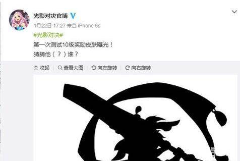 1月21日晚上,《光影对决》官 网微博发出了神秘的预告,单独放出了绝版皮肤的剪影没有留下任何线索。许多玩家开始猜测到底是哪位英雄的皮肤,不过因为《光影对决》的主角的武器设计非常具有个性,所以大多数玩家根据剪影就猜出了是主角流云的皮肤。