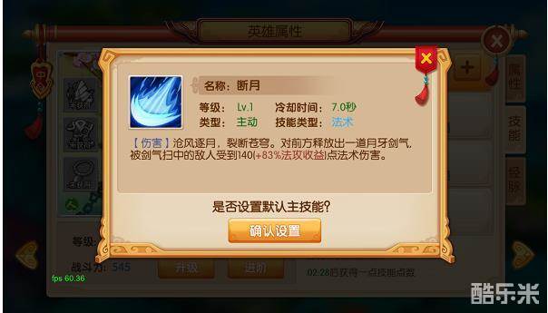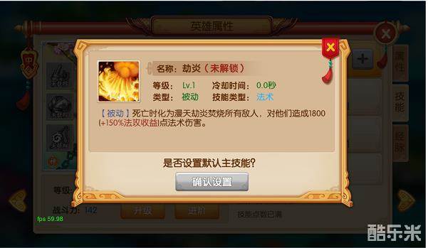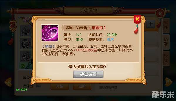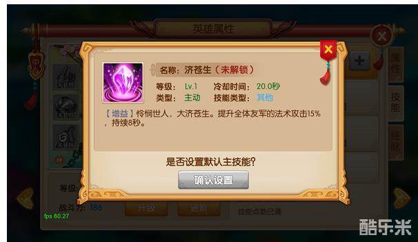 2、除被动技能外,每个英雄上阵时只能使用一个特定技能,只需将那个技能设置为默认主技能即可。