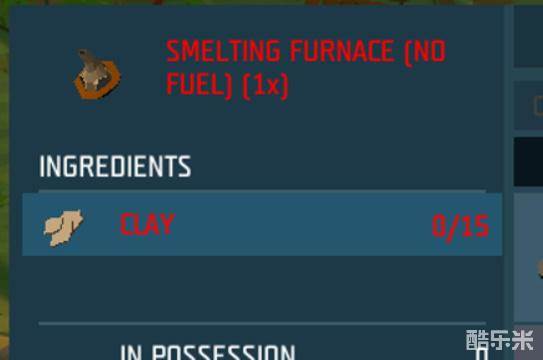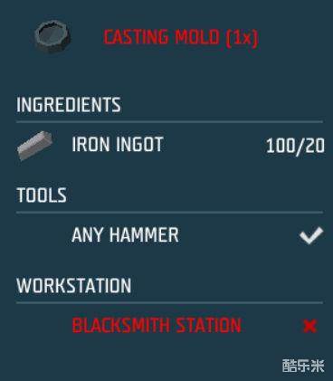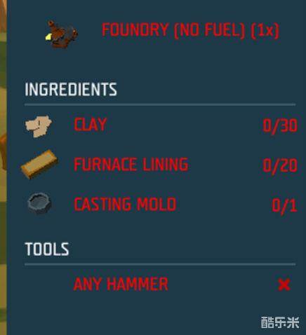 所需原材料:30个粘土矿、20个炉衬、1个铸模;