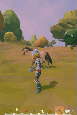 马,可供驯养,成为坐骑,是作为交通工具的极其重要的动物,击杀可以获得生肉和马皮。玩家可以同时驯养多匹马,一吹口哨就都过来了。