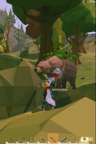 棕熊,出生岛上的陆地霸主,同样会主动攻击人类,进入铁器时代之后才初步具备正面硬刚的底气,击杀后获得生肉和棕熊皮。