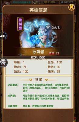技能1:夺命寒冰:攻击后排并有50%几率冰冻两回合,毫无疑问,看脸的技能,楼主用冰尊者试过基本每次都有一个冰冻马马虎虎吧!