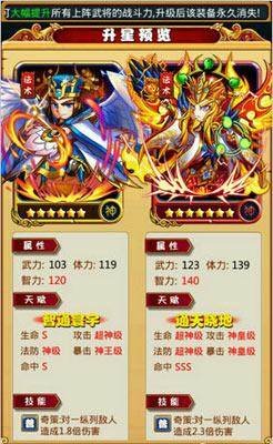 升星天赋(进阶+6):【通天晓地】生命超神级,攻击神皇级,法防超神级,暴击神皇级,命中SSS