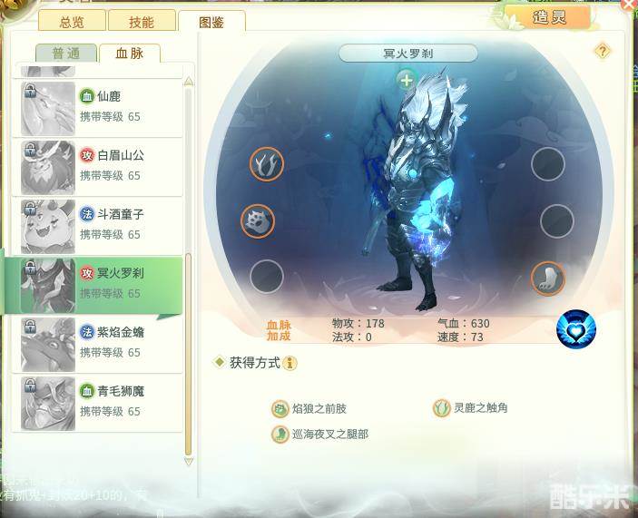 那么在65的时候我们可以选择替换罗刹部件解锁罗刹宠物血脉,也就不用等到65