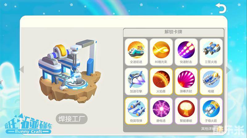 《疯狂碰碰车》的神秘科技系统用于技能卡牌升级,其中包含多个科技工厂,每提升一个科技等级,即可解锁一个新工厂,而新的工厂可以解锁其它工厂没有的技能卡牌。
