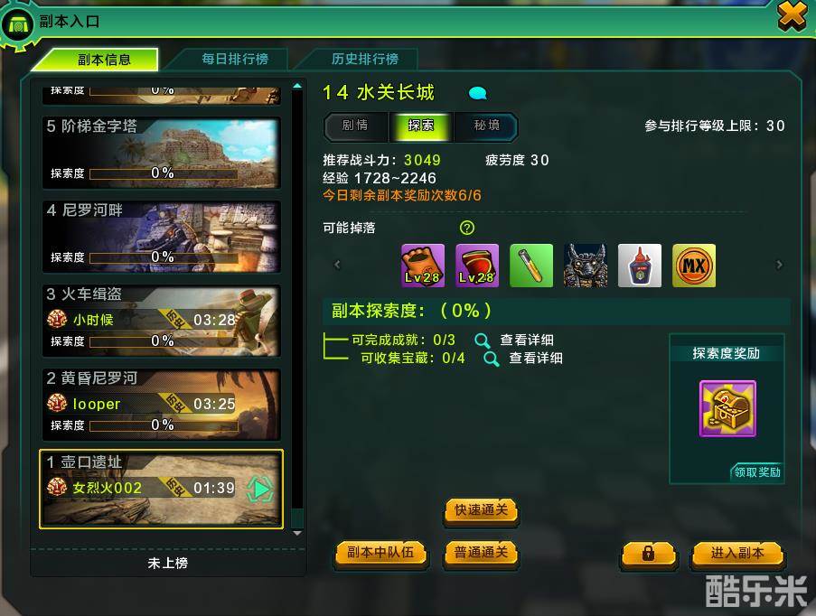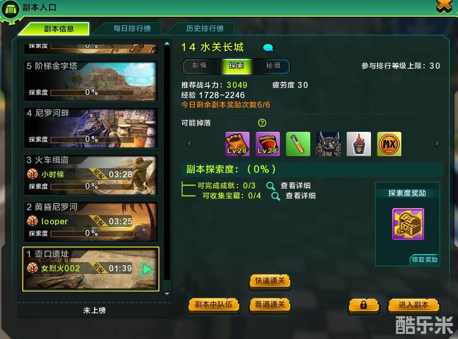 探索本:中等难度副本,可获得宝藏,及普通道具装备,完成探索度100%后还可获得探索度奖励。