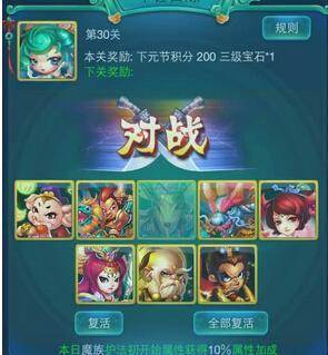 3、燃灯和大圣是防止对面的乱阵。虽然前排4个护法都能攻击上3万,但是对面吹起风来防不胜防,可以在前10关也把大圣放前排把攻击养起来。