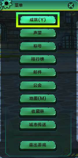 进入菜单(点击快捷键“J”或者点击屏幕右下角的菜单图标)选择成就选项,或者点击快捷键Y。进入成就系统。