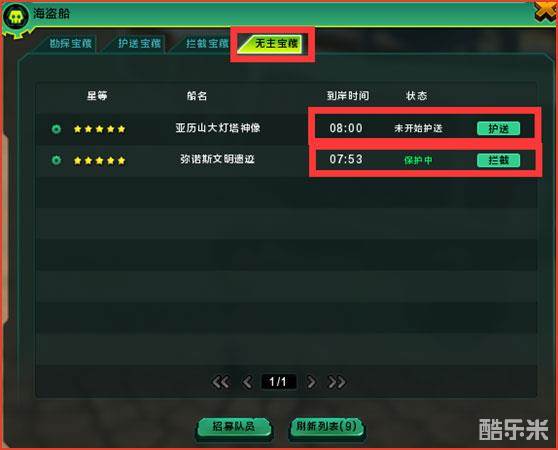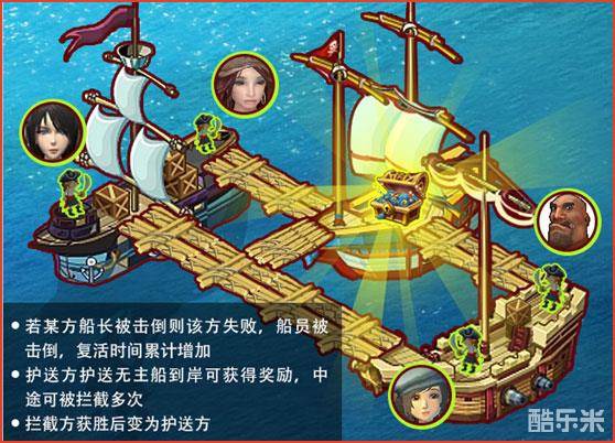 1、团长可护送海盗船,如护送时间内没有人拦截,则护送成功,如有人拦截,则进入战斗