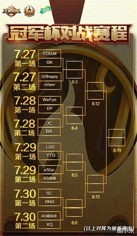 【淘汰赛第一轮(16进8)】7月27日至7月30日,每天两场BO5赛事