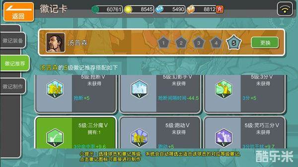 洛达是个强大的跑位投手,外线杀器.利用跑位接球和瞬间出手的大招,可以轻松创造出空位投篮机会.灵活跑动,让对手对你防不胜防.与汤普森了类似,洛达的最佳5级徽记推荐搭配为抢断+5、抢断间隔时间-44.5、3分+5、3分命中率+9.6、跑动+5、3分抗干扰+9.7,就这样,一记记的3分球摧毁着对手的心理防线,一步步得离胜利靠近.