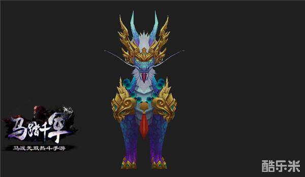 古籍记载中,麒麟的外貌兼具“龙头、牛角、鹿身、马蹄、鱼鳞、牛尾”,这种造型是由一些备受人们珍爱的动物所具备的优点,全部集中在麒麟这一幻想中的神兽的建构上形成的。《马踏千军》中的玄冰麒麟坐骑也不例外,华美的鳞甲,雄壮的外形,无处不体现出它特有的珍贵和灵异。