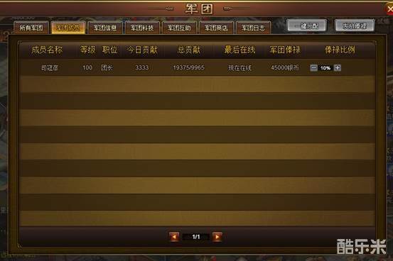 ②军团成员界面可以查看军团所有成员信息,并且军团长可在这界面给军团成员分配每日俸禄比例,俸禄比例加起来总和不能超过100%。