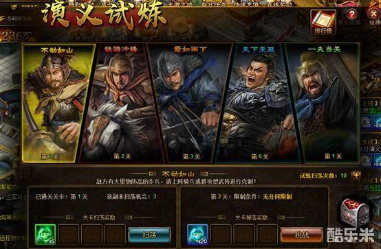 ②演义试炼玩法分为5个关卡,每个关卡可获得相应奖励。