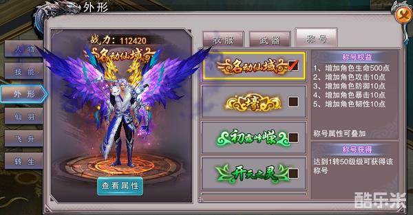 3、当玩家满足一些特定的条件时,就可以获得特殊称号。称号种类众多,并且称号也可以增加角色属性。