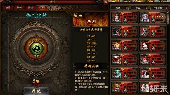 玩家可通过主界面下方的武将按钮进入武将培养界面。