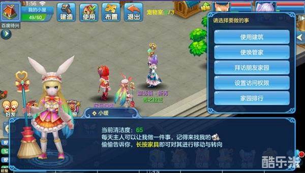 管家小暖,可以使唤她做清洁哦,每日可为主人服务一次,服务内容为清洁或许愿。清洁就是打扫房屋,每打扫一次可使家园清洁度增加30-45;许愿是向星月宝树许愿,每许愿一次星月宝村就获得一点许愿值,许愿值也是星月树的成长值。