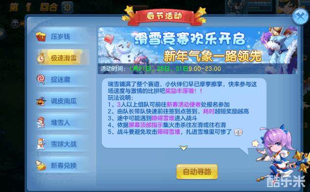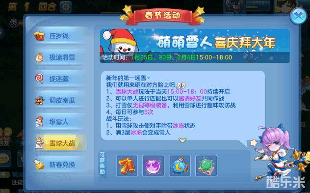 活动开始后,几大场景地图刷新出雪怪,玩家组队挑战,这个里面特殊怪比较多,一不留神就会失败,所以尽量组手动战斗。
