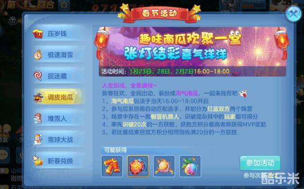 昨天更新后,出了一系列的春节活动,相信老区的玩家一看就明白了,就是把2016年全部节日的活动重新出的了一遍,估计是策划哥哥着急回家相亲,所以活动形式都没有变,只是换了名字而已。但是对于刚去新区玩的玩家来说,有的也许会比较陌生,小编为大家简单介绍下这几个活动的活动玩法和技巧。