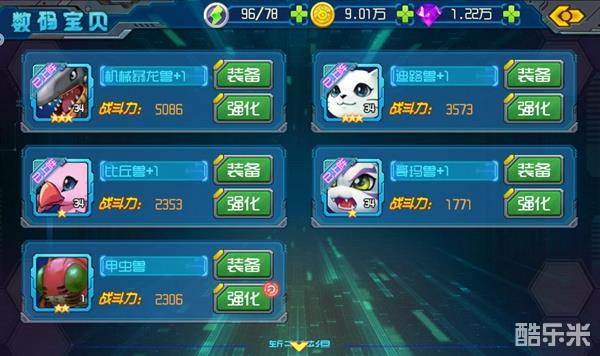 在这里,训练师们可以对已经拥有的数码宝贝分别进行升品、升级、升级和技能强化。