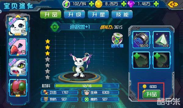 在《究极数码进化》中,升品就是通过消耗一定“强化模块”“攻击、防御和技巧晶体”和金币来提升宝贝所有属性值,当然,升品还需要一个关键因素,那就是数码宝贝等级需要满足升品等级,这样宝贝才能成功升品哦!