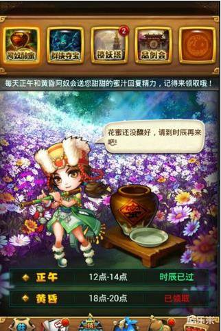阿奴酿蜜:玩家们每天登陆游戏,在正午和黄昏阿奴会送您甜甜的蜜汁回复精力。