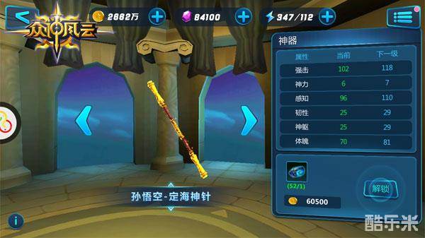当主角等级达到32级后便能开启神器系统,每个神灵都拥有自己的神器,神器初始需要使用神念碎片解锁.解锁后可对持有神器的神灵提供特殊加成.