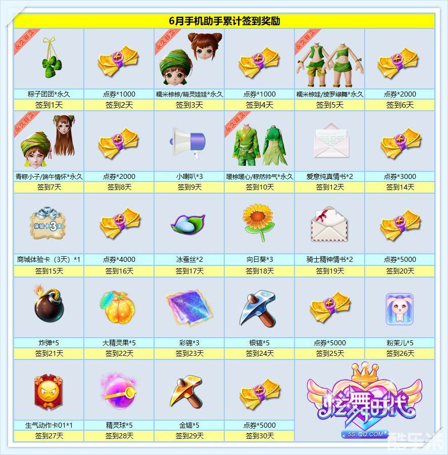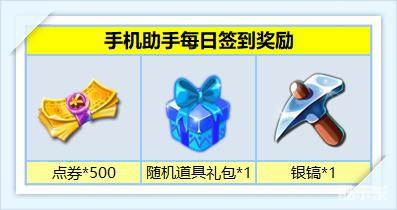 6月手机助手每日签到,即可获得随机道具包+500点券+银镐哦!打开道具包就有可能获得心动一刻等超多热门道具,心动20不是梦~