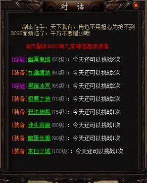小编给各位玩家一个小提示,经验副本的话建议在下午14:00-17:00的双倍经验时间段或者晚上19:00-21:00,然后再使用一个双倍经验符再去闯一闯,经验更是几何倍数增长。进入装备副本记得带上宠物助你一臂之力哦。