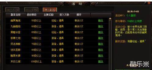 目前低级副本都有2次挑战机会,。副本随等级增高开放,等级高的无法进入低等级副本,已开放的副本有9种: