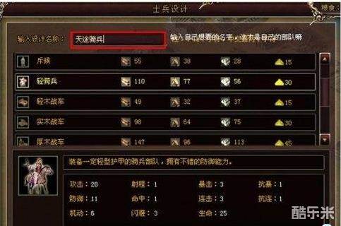 部队的名字,全部由我们可以编辑哦,轻骑兵属性看好哦,等等创建好后就会大变样了,让您的部队提升一个等级。