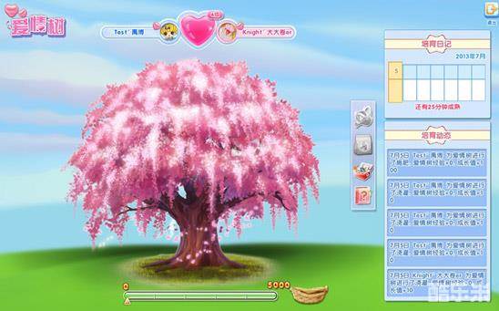 在上方可以查看当前爱情树经验值、下方可查看爱情树当前累积的成长值,成长值最大,成熟后收获的果子越多哦!
