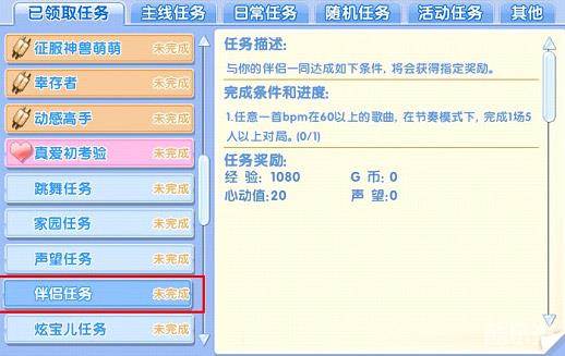 成为伴侣之后,在任务手册会多出每日伴侣任务和伴侣等级解锁任务,完成每日伴侣任务可获得大量经验和心动值。