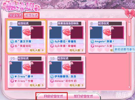 点击姻缘树—纪念仪式,可以开启纪念仪式,开启须在商城—伴侣—仪式道具中购买“纪念仪式开启卡”。