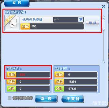 若背包中任务卷轴数为0,点击后会默认弹出购买任务卷轴对话框,购买后可刷新随机任务列表,选择适合 你的随机任务。
