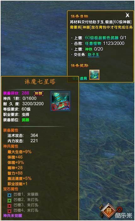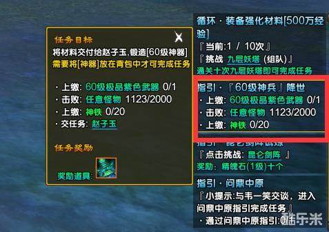 2、上缴一把60级极品紫色武器(紫色武器可以通过锻造技能制作,极品属性可以使用极品鉴定符鉴定获得)