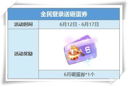 6月版本起(皇宫大区6.12,其他大区6.14)-6.17,活动期间只要登录游戏,就送砸蛋券啦!不用998也不用98,免费送!