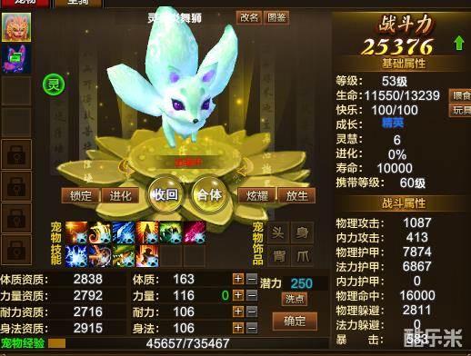 终于,一个萌萌哒的灵兽培养成功,接着就是带着她到处升级打怪啦!
