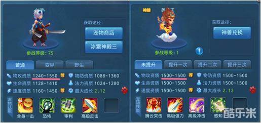 由于剑灵的定位和神兽猴子比较类似,所以就拿猴子来进行对比。首先我们来比较一下两种宠物的属性。