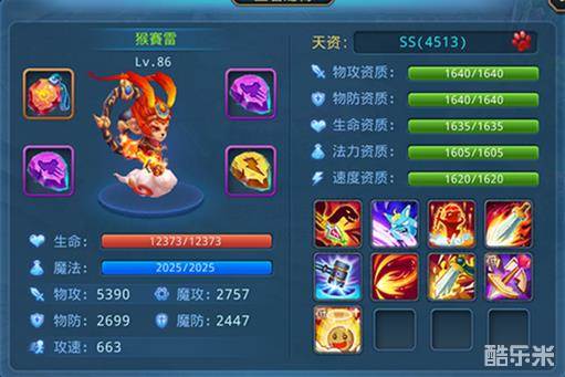 腾云突击:最高单体爆发技能没有之一。可以达到先手秒掉对面高输出宠物的目的。由于是两段伤害所以还能将必杀的概率提升一倍。75的时候猴子在出双爆的情况下可以对输出宠造成大概1.6w的伤害。