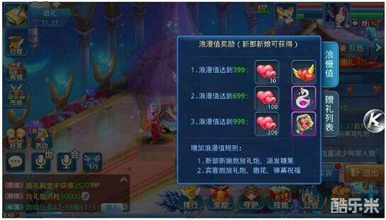 (而婚礼中新郎新娘还可努力提升浪漫值,大家看见没?好多奖励呢,哦买嘎~好想要玫瑰,好想要心心相印!)