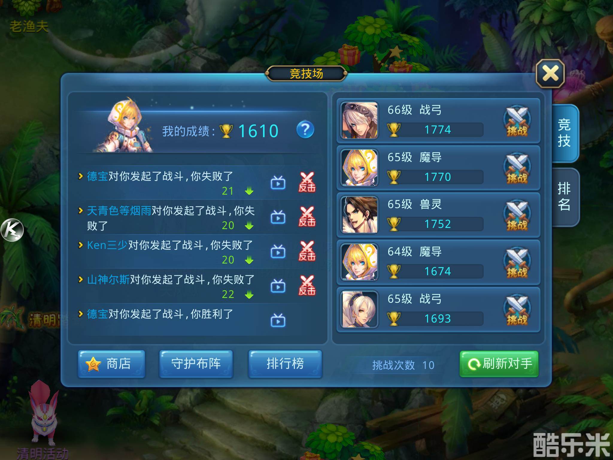 每个人每天只能对战十场,努力打败对手,提升自己的排名吧!