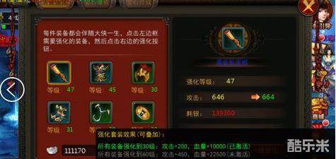 很明显强化套装的属性没有加成没有宝石套装的加成高,但是作为最主要的战力提升方法,在等级上去的时候一定要记得将装备的等级提升上去。而且所有强化效果是叠加的!